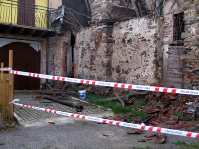 "I comproprietari sono numerosi, stiamo procedendo con le notifiche" ha spiegato il responsabile dell`area tecnica Marco Manzoni "Abbiamo effettuato un sopralluogo con uno di loro per stabilire il tipo di interventi necessari. Sar? necessario rivolgersi ad un`impresa per alleggerire la struttura eliminando le tegole vecchie e le travi cadute all`interno e all`esterno delle mura. Bisogner? poi ripulire l`area dagli ammassi di macerie, che possono creare problemi di igiene pubblico se non rimossi. Il tutto sar? a spese dei proprietari, che dovranno comunicare al comune le modalit? e i tempi dell` intervento".